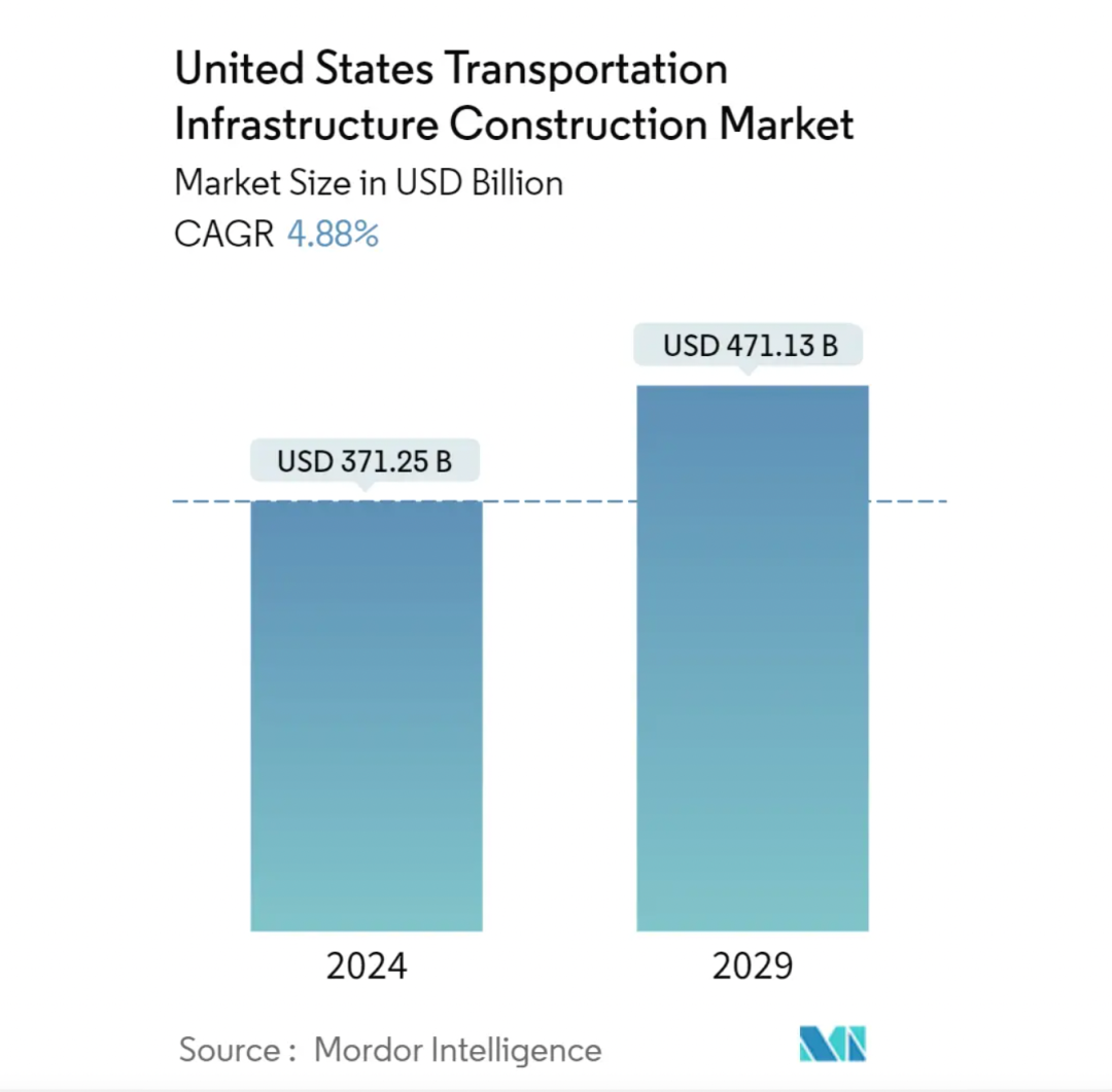 美国交通基础设施建设市场规模和份额分析报告显示,2029年,美国交通基础设施市场规模预计达到4711.3亿美元