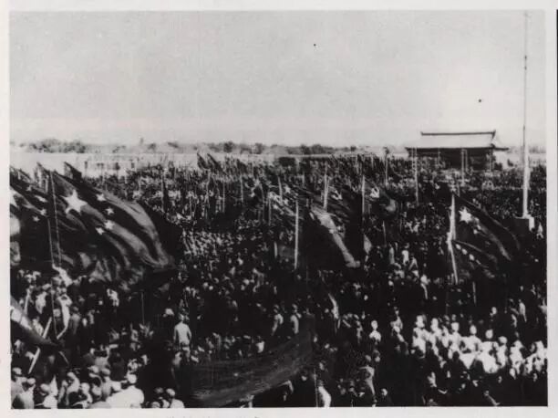 毛泽东同志等领导人登天安门城楼时的照片