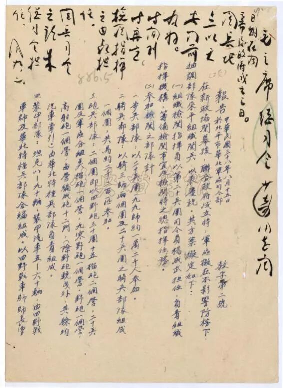 周恩来同志对聂荣臻司令员关于阅兵方案的批示